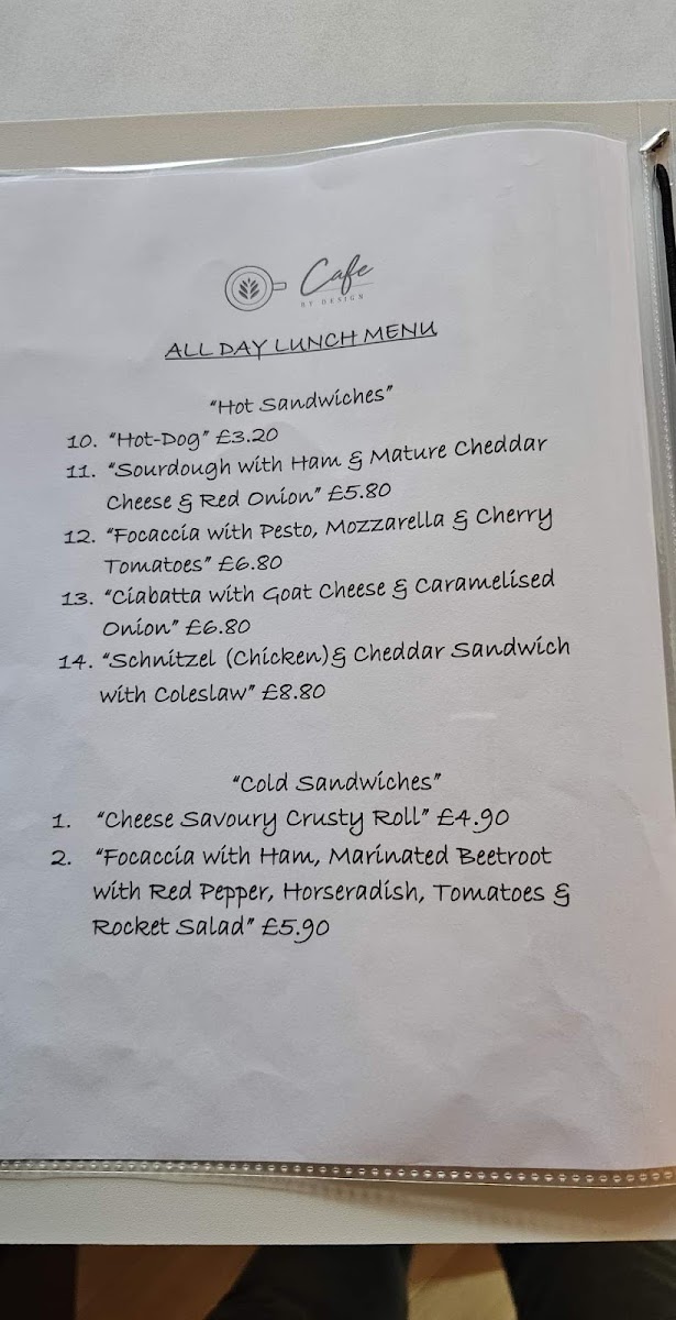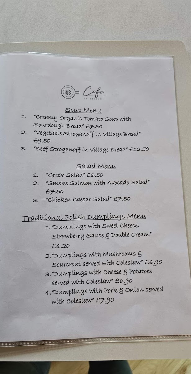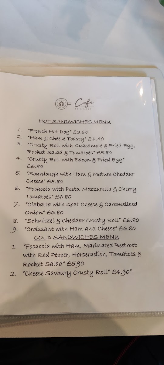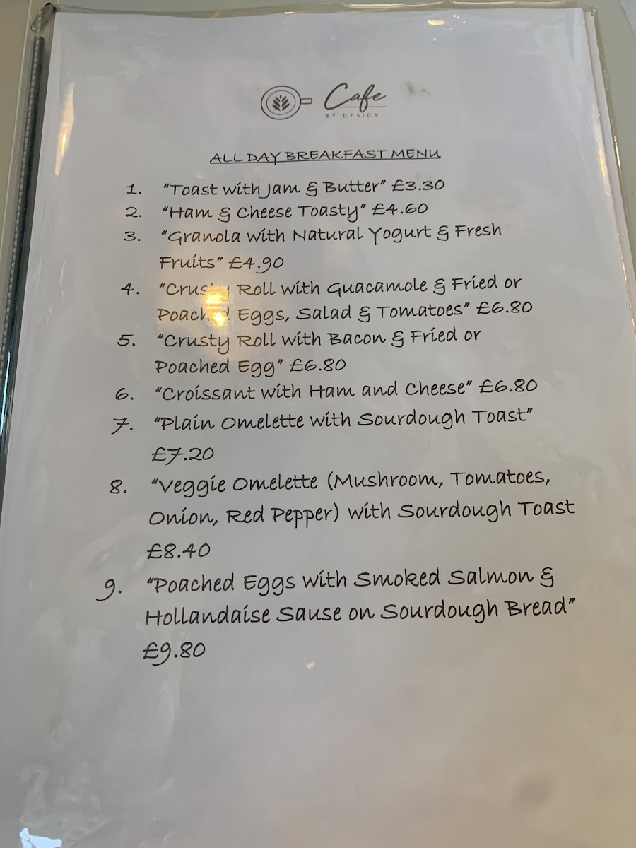Cafe By Design Menu
